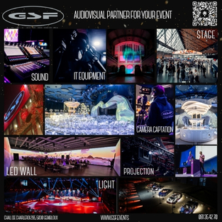 GSF Events est une société basée en Belgique, spécialisée dans la location de matériel audiovisuel et la production technique d’événements, couvrant le son, la lumière, la vidéo et les solutions scéniques. Nous intervenons à travers plusieurs départements clés, notamment le design 3D et la conception technique, les solutions d’éclairage (traditionnel, LED, automatisé et architectural), les structures et le truss, la projection vidéo et les solutions d’écrans LED, ainsi que les systèmes audio professionnels.